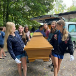 Berührungsängste? Nicht bei den Konfis der Elias-Gemeinde Dortmund! Vergangenen Freitag durften wir im Rahmen ihrer Konfirmationsvorbereitungen die aktuellen Konfirmanden und Konfirmandinnen der Ev. Elias-Gemeinde Dortmund auf ihrer Pilgerreise im Haus am See in Dülmen besuchen. Benjamin Huhn und unsere Auszubildende Fr. Bonnemann machten sich auf den Weg und brachten den Jugendlichen unsere Arbeit näher. Nach einer interessanten Gesprächsrunde wurde aus der Theorie gleich Praxis: Was macht ein/e Bestatter/in? Wie fühlt sich eine Urne an? Wie sieht ein Sarg von innen aus? Wie schwer ist ein Sarg überhaupt? Mit viel Interesse und Neugier hatten wir gemeinsam einen wirklich spannenden Nachmittag. Am Ende reichte die Zeit sogar noch für ein kleines Fußballduell - Bestatter gegen Konfis. :-) Wir bedanken uns ganz herzlich für die Einladung! |